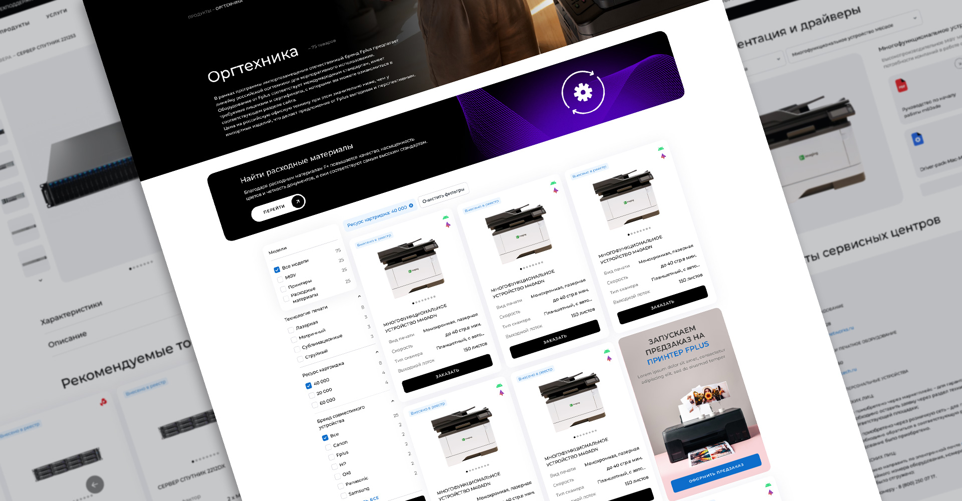 Редизайн веб-сайта холдинга Fplus, производителя и ведущего поставщика высокотехнологичных брендов, входящего в первую тройку ИТ-компаний России.