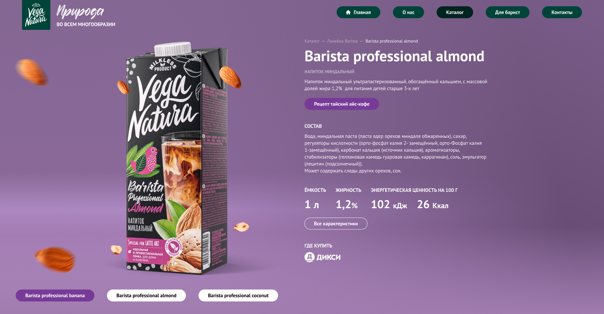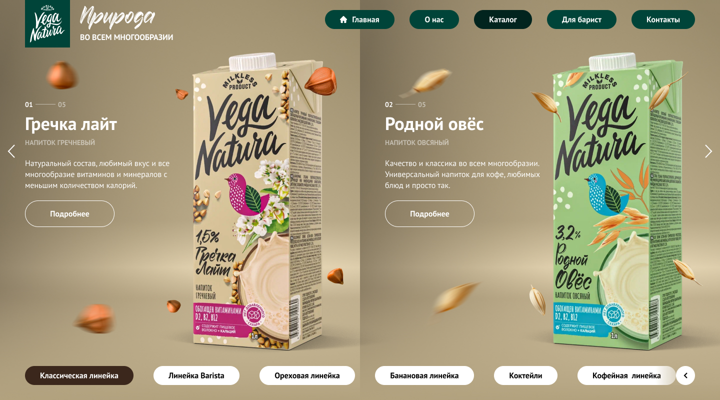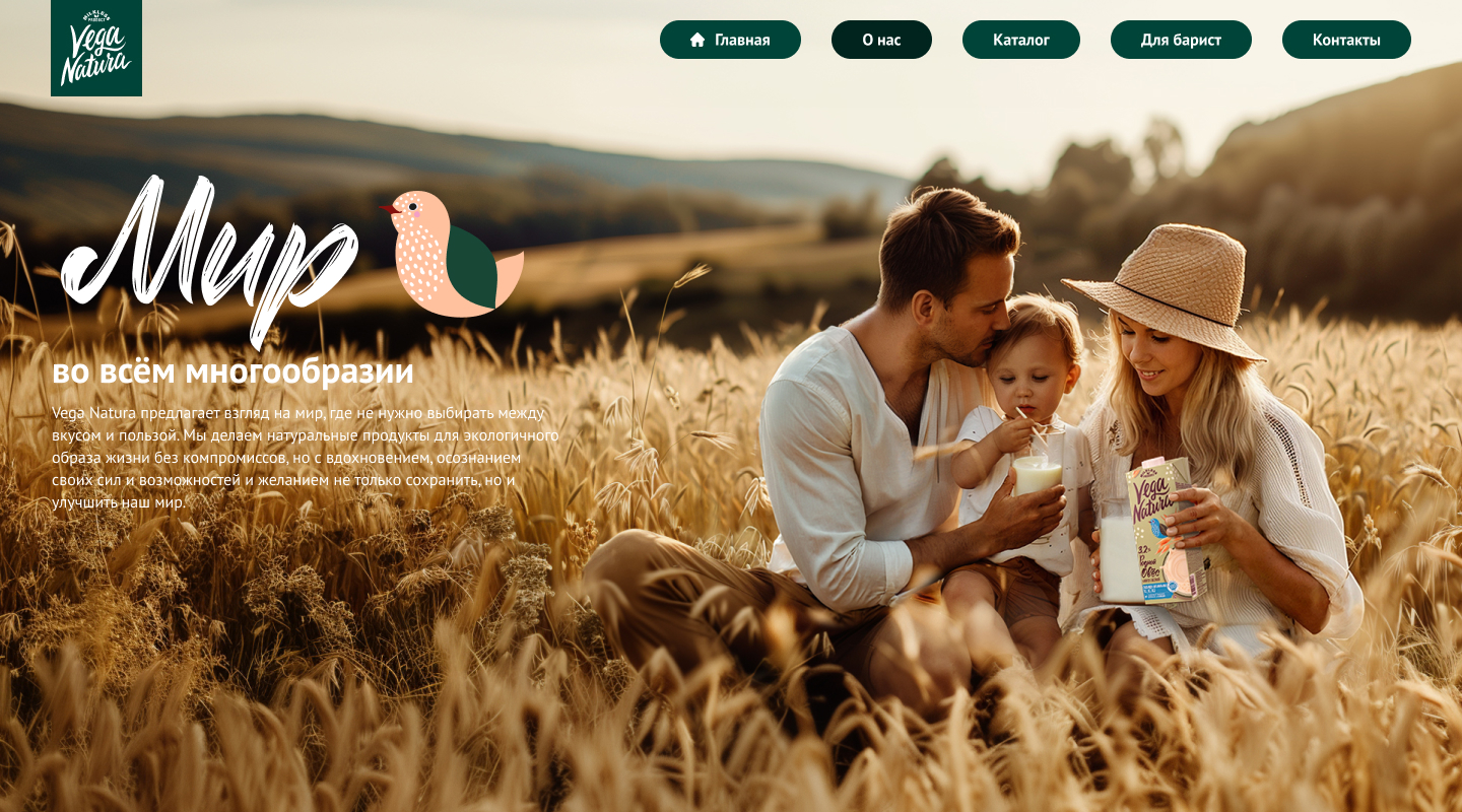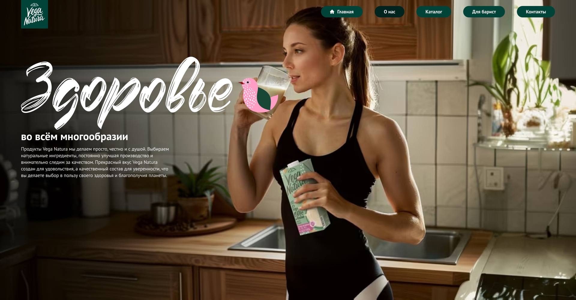 Разработать веб-сайт нового бренда растительных напитков Vega Natura.
